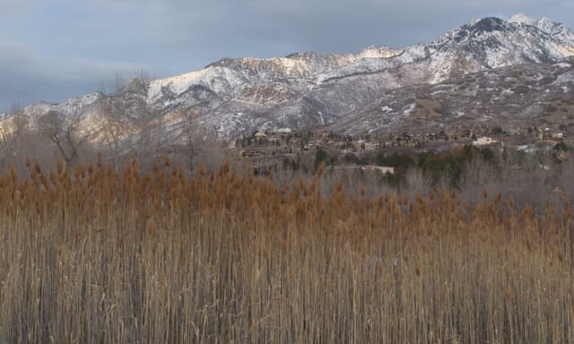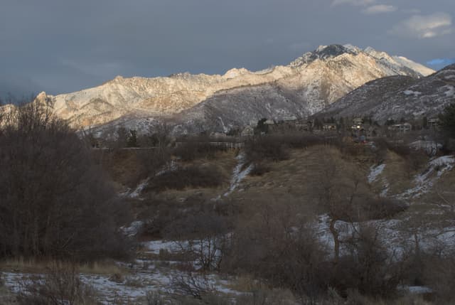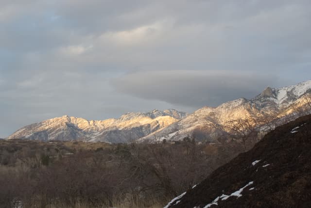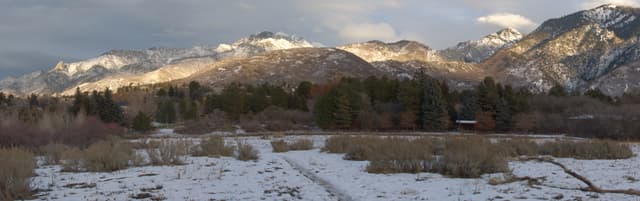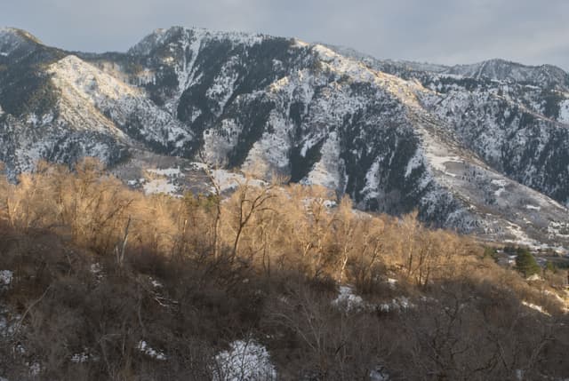 A few pictures from a leisurely hike in Dimple Dell Park. It was mostly cloudy, but the evening sunlight was able to get through some breaks and shine on the snowy mountains.